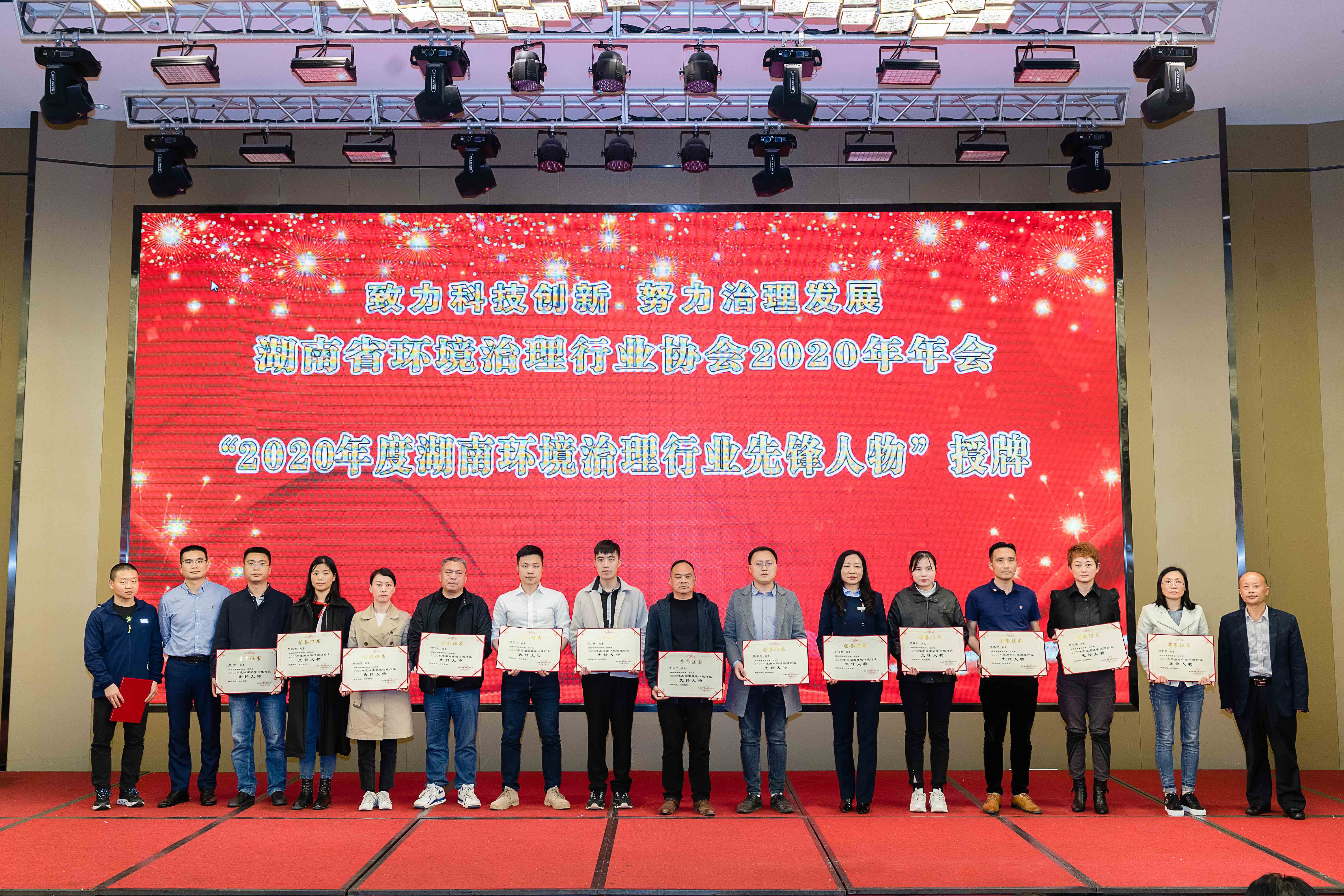 春暉漸暖,萬象更新。3月31日,湖南省環(huán)境治理行業(yè)協(xié)會(huì)2020年年會(huì)在長沙順利召開,本次年會(huì)主題是“致力科技創(chuàng)新、努力治理發(fā)展”,湖南省環(huán)境治理行業(yè)協(xié)會(huì)會(huì)長、理事單位代表和各會(huì)員單位代表約600余人參加此次會(huì)議。恒凱環(huán)保作為行業(yè)協(xié)會(huì)常務(wù)理事長單位受邀參加本次會(huì)議,并榮獲“2020年度湖南環(huán)境治理行業(yè)先鋒企業(yè)”,公司總裁邢漢君先生榮獲“2020年度湖南環(huán)境治理行業(yè)先鋒人物”。